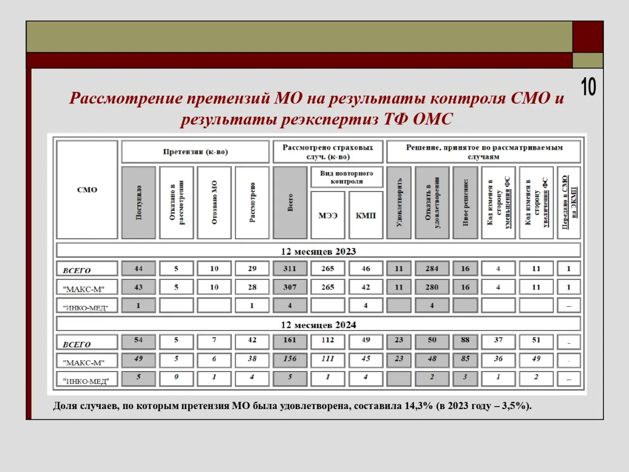 О результатах реэкспертиз и рассмотрения претензий 2024 г