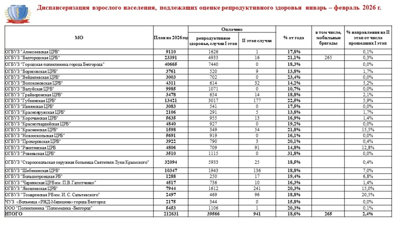 Диспансеризация для оценки репродуктивного здоровья - это мероприятие, которое проводится для женщин и мужчин репродуктивного возраста одновременно с прохождением профилактического осмотра или диспансеризации.